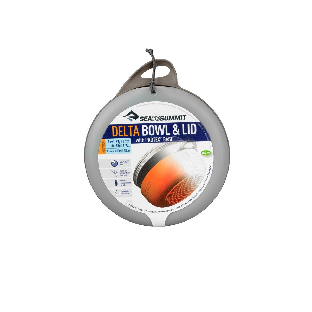 The Sea to Summit Delta Bowl With Lid keeps food in and the bugs out. The bowl itself is lightweight, easy to clean and the thumb grip on the side allows you to easily hold the bowl in one hand and eat with the other. The base uses Sea to Summit's patented Protex hex pattern, which cuts down weight and also helps disperse surface temperature. The lid forms a neat press fit over the bowl, which can also double as an additional plate or food preparation surface. With specifically designed steep side walls, you won't slop your dinner or soup over the top.