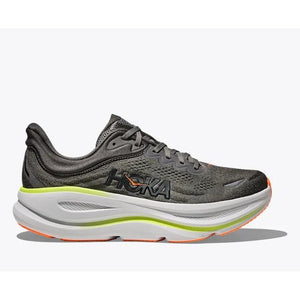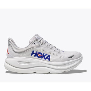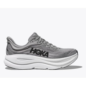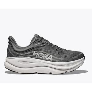 One of the hardest working shoes in the HOKA lineup, the Bondi 9 delivers peak plushness for everyday miles. Overhauled from top to bottom, we've increased the stack height and added a new premium foam midsole to deliver that soft, resilient ride that's become synonymous with the Bondi. Elevated with a 3D molded collar and structured knit upper with zonal breathability, this ultra-cushioned cult favorite has been finished with Durabrasion rubber to combat high wear zones. | Features. 3D molded collar. Super critically foamed EVA. Engineered mesh with 55% recycled polyester. Reflective upper details. Extended heel pull. Smooth MetaRocker. Rearfoot-focused Active Foot Frame. Molded EVA sockliner. Durabrasion rubber outsole.
