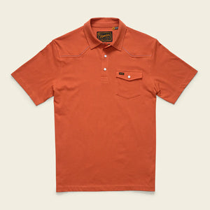 The Ranchero Polo has all the versatility of your favorite staple polo but is a major style upgrade with its cool single pocket design, pearl snaps and subtle western style yoke. Made of super soft 100% heathered cotton you have come to expect from Howler with a straight hem for untucked wear. One of the best sellers in our Austin retail stores every season.