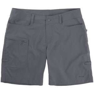 Designed to handle the grit and grime of the outdoors, guides, anglers and everyday adventurers love the NRS Women's Lolo Short. These lightweight, rugged shorts are made for hot days on the boat and on the trail. Recycled nylon/spandex blended material creates a lightweight short with optimal stretch for superior performance and comfort. DWR-treated, abrasion-resistant fabric sheds water, dries quickly and withstands the abuse of the outdoors. Zippered fly with waist button for ultimate convenience. Five-pocket design, including a zippered cargo pocket, offers plenty of places to store essentials. 8" inseam.