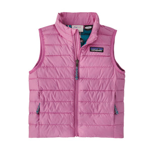 The Baby Down Sweater Vest has a NetPlus® 100% postconsumer recycled nylon ripstop shell made from recycled fishing nets to help reduce ocean plastic pollution; is insulated with warm, compressible 700-fill-power 100% Recycled Down (duck and goose down reclaimed from down products); and layers easily for warmth in colder conditions.