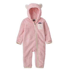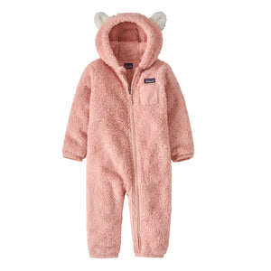 One-piece cozy bunting made of 100% recycled polyester high-pile fleece for cold-weather warmth. Three-panel hood, animal ears and tail styling, plus a binky-sized chest pocket. Made in a Fair Trade Certified™ factory.